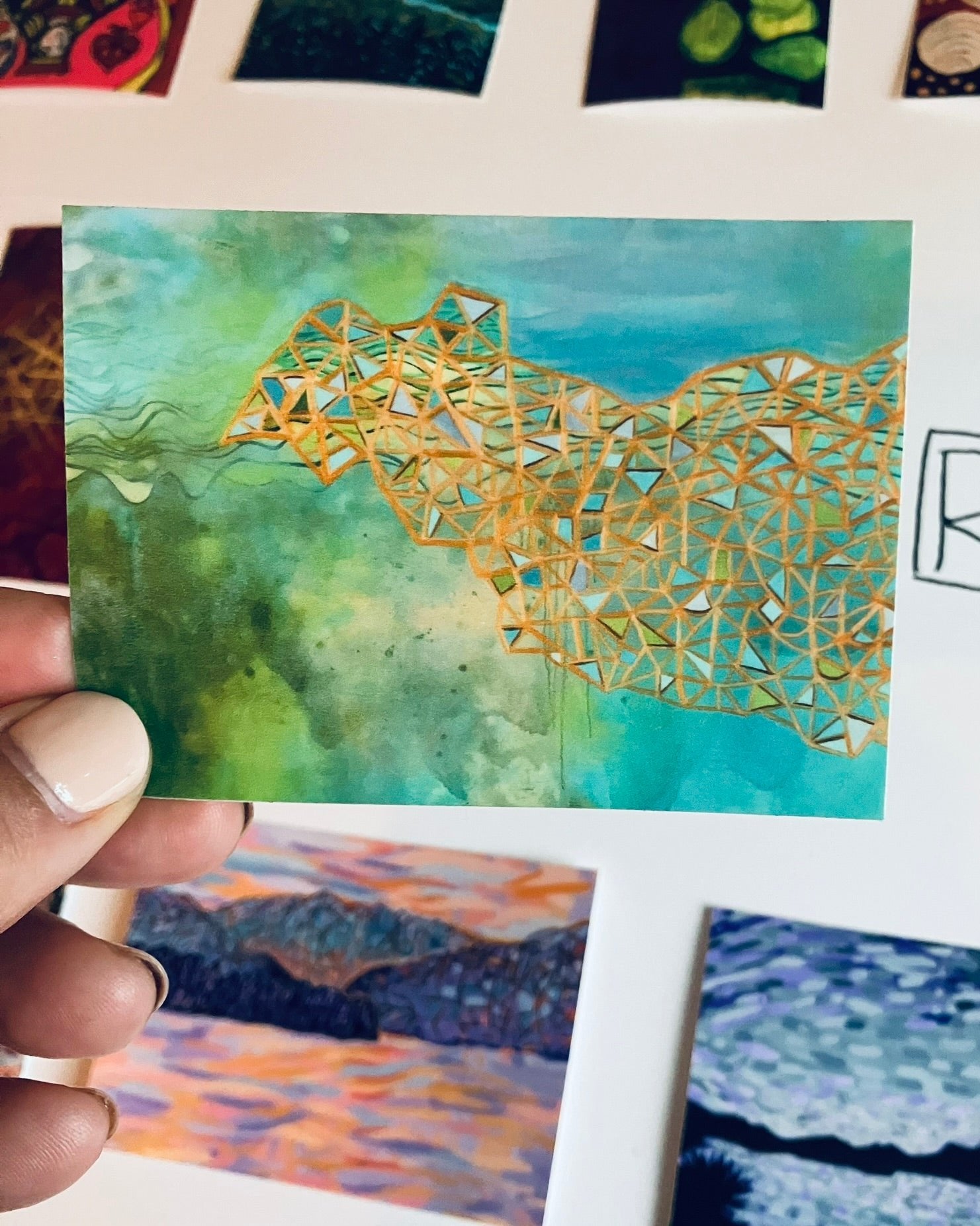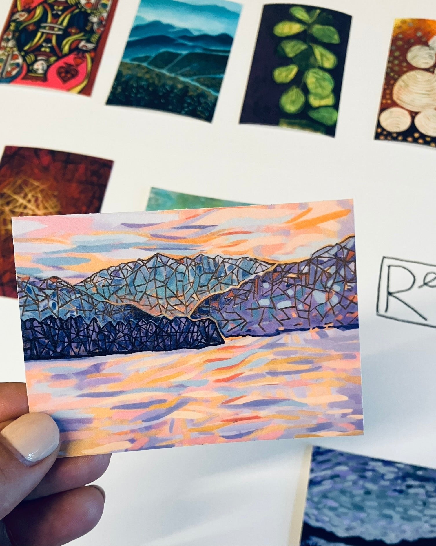 This year’s sticker pack is a unique opportunity to sample many of my paintings at once before committing to an original or a larger print. They make a lovely decoration for your water bottle, thermos, laptop, office wall, car dashboard, bicycle, motorcycle, or surfboard. You could place them on a home altar for good luck, make ornaments, magnets, or put them in tiny frames to hang on a wall. Make your holiday correspondences more special with a little surprise, or keep them for yourself. They make great bookmarks if you're scared of commitment. What else can you do with them? Show me please!